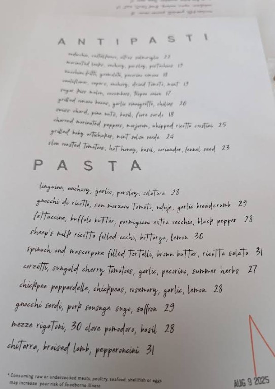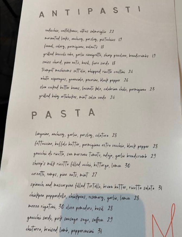 Finally tried this spot after wanting to go there for a year and it was great!! but did not make the list of my top spots in the city - I guess I had very high expectations. The ricotta toast was tasteful but felt heavy, on the other hand the trumpet mushrooms were very flavorful. Mezze rigatoni was cooked very well but honestly was a bit underwhelming since it just came with cheese and basil, but still yummy. I absolutely loved the spinach and mascarpone tortelli. Olive oil gelato was okay, glad I tried it but wouldn’t get it again. The olive oil taste was bit too intense